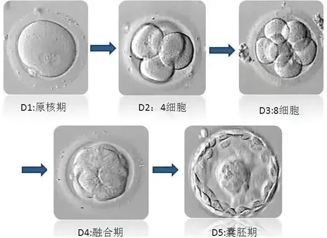 · 囊胚:是在体外培养至5、6天形成的胚胎。如果培养到第3天,就称为卵裂胚。通常用D3、D5、D6代表胚胎培养的天数 (D是Day的简称)。