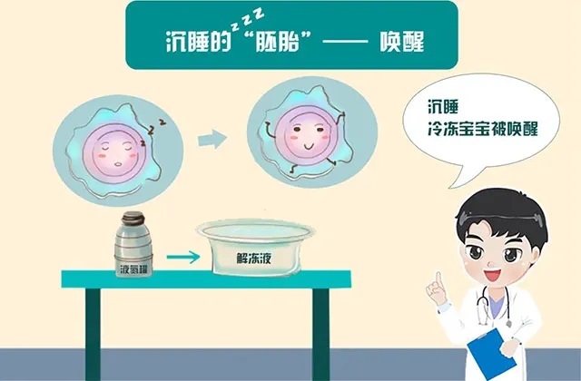 当需要使用时,胚胎会被取出,放入专门的解冻液中。解冻液能逐步置换掉保护剂,并让胚胎回到适合生长的培养环境中,相当于慢慢把“沉睡的宝宝”唤醒。