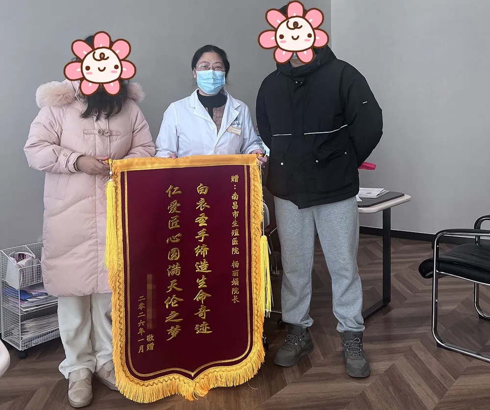 1月27日,来自南昌新建区的刘女士和丈夫熊先生,携带一面印着“白衣圣手缔造生命奇迹 仁爱匠心圆满天伦之梦”20个大字的锦旗,专程向我院首席专家杨丽娟报喜,致谢这位为他们点亮生育希望、助他们终结求子磨难的“送子观音”,分享家中迎来健康男宝的喜悦。