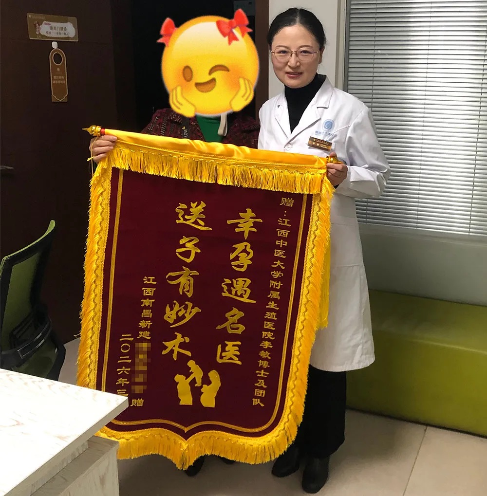 3月17日,来自南昌新建的余女士(32岁),怀揣着满心喜悦专程来到南昌市生殖医院,将一面锦旗送到生殖医学科李敏博士手中,感谢其帮助她们的小家圆了三胎育儿梦。
