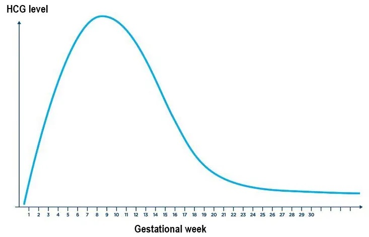 达到峰值后持续1~2周左右,此后快速下降,到妊娠中晚期,HCG仅为峰值的10%。这也是为什么过了孕早期就不再监测HCG的缘故。
