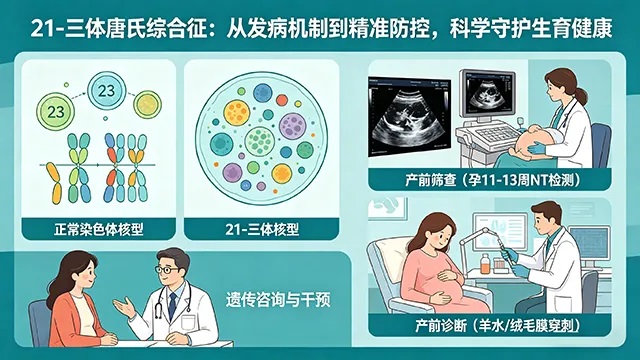 唐氏综合征即21-三体综合征,是人类最常见的常染色体非整倍体遗传病,由胚胎细胞内第21号染色体多1条拷贝所致。该病可导致智力障碍、特征性面容、生长发育迟滞及多系统先天畸形,目前尚无根治手段,孕前预防与产前精准筛查是降低出生缺陷的核心策略。