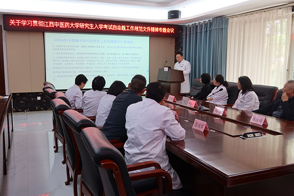 会议重点围绕自命题工作规范、招生管理新要求等内容展开,旨在强化导师责任意识,提升自命题工作规范性与安全性,为研究生招生考试公平公正提供坚实保障。培训紧扣江西中医药大学印发的自主命题管理文件(共十二章56条),结合医院实际,重点解读了自命题工作的关键规范与禁止性条款,强调了自命题是研究生招生考试的核心环节,必须严格遵循“全程管理、责任到人、安全保密”的原则。