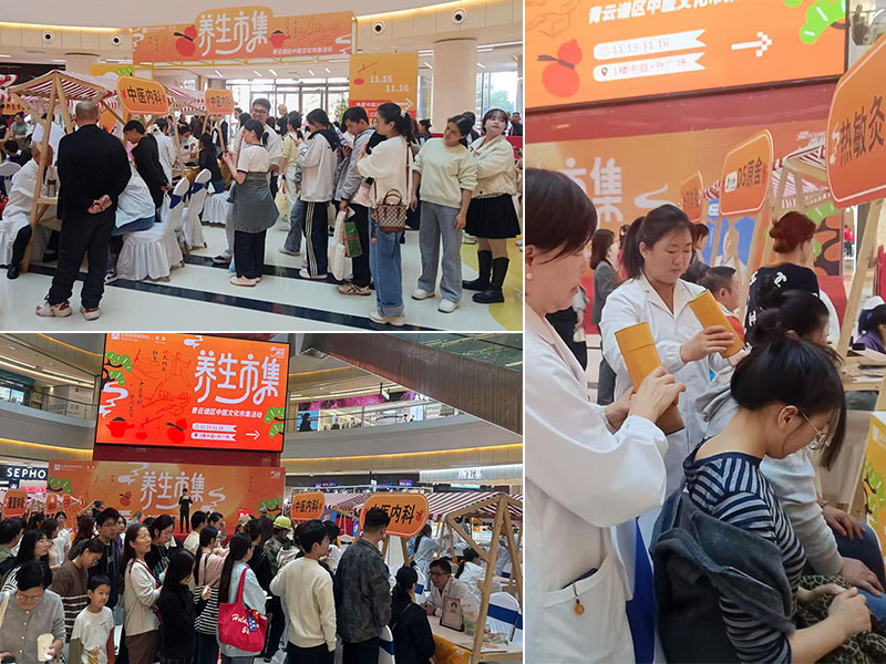在活动中医内科区,中医科、治未病科的专家耐心细致地为每一位前来咨询的市民进行中医体质辨识、脉诊,并提供个性化的健康指导和调理建议。累计提供健康咨询与义诊服务300余人次,其中不乏大量年轻人,深受好评。除了一对一的精准问诊,市集还设置了丰富多样的便民体验区:在中药饮片展示区里,各类中药材整齐陈列供市民直观了解,中心自制的免费中药开胃消食茶饮香气四溢、备受青睐,工作人员细心讲解茶饮的功效与适用人群,让大家轻松掌握日常养生小技巧;同时,热敏灸、按摩等传统中医理疗服务同步开展,医师们手法娴熟专业,精准缓解群众颈肩腰腿痛、疲劳乏力等不适,体验过的市民纷纷点赞:“不用跑医院,在商场就能享受到如此高质量的免费中医服务,太贴心了!”